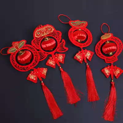 Small Chinese knot hanging ornaments new Chinese fish living room large safe and exquisite red door on the housewarming decoration blessing character hanging decoration