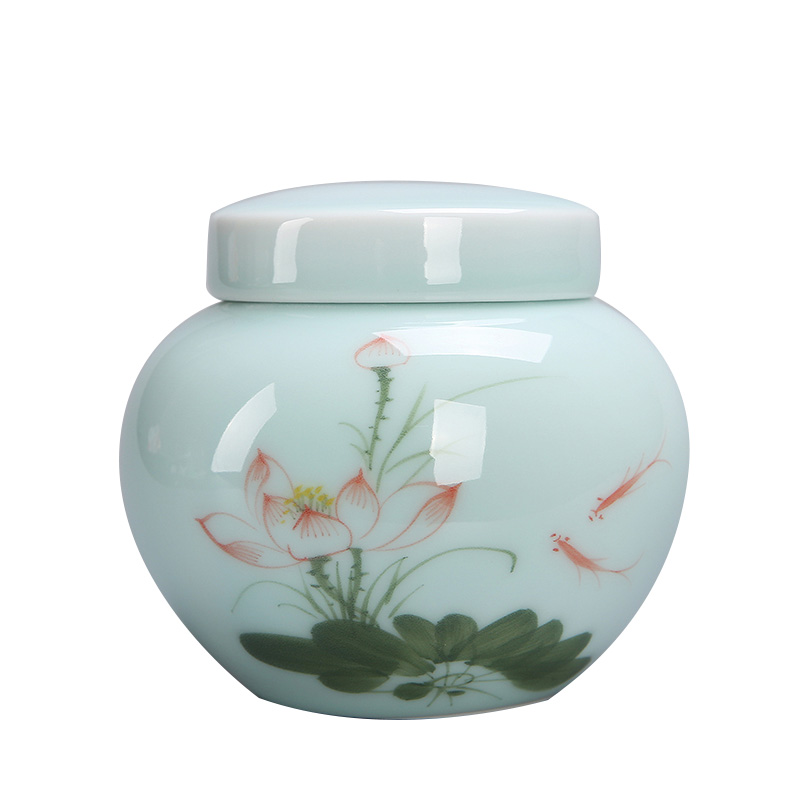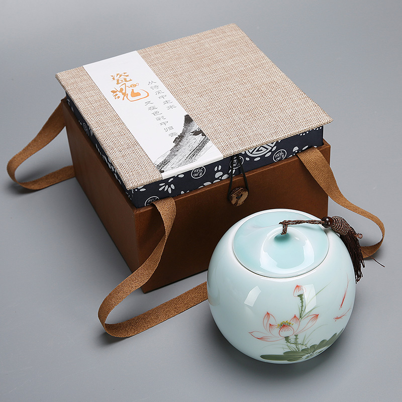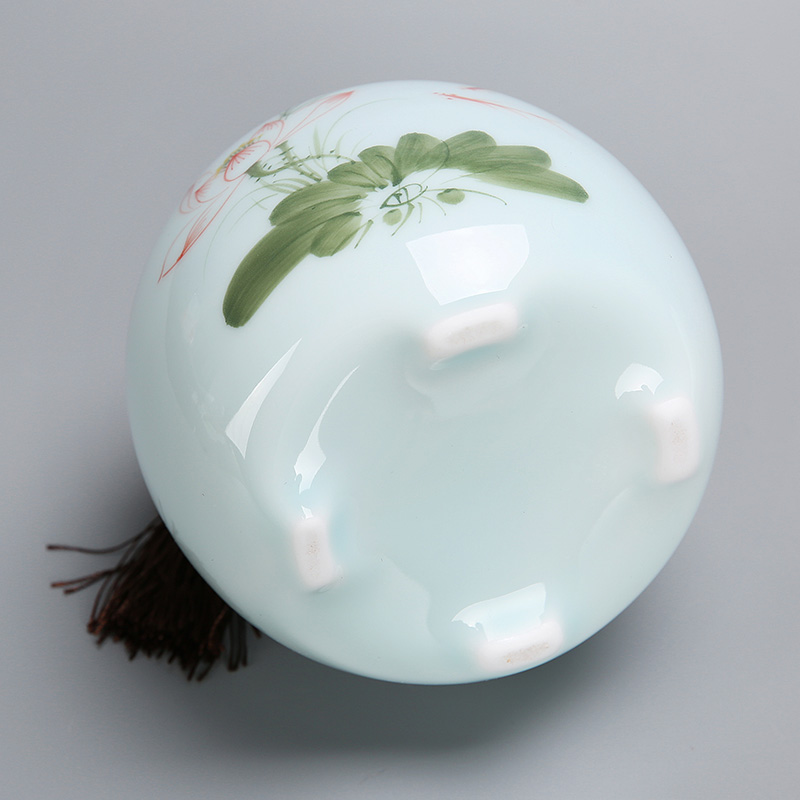 Hand painted pink green tea pot ceramic large, medium and small half-pound storage tank Sealed tank moisture-proof pot Tea gift box