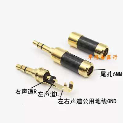 Gold-plated carbon fiber 3 5mm stereo welded headphone plug 3 5mm three-section plug L-type elbow
