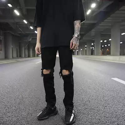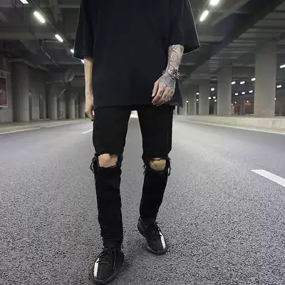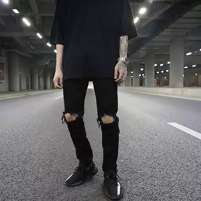 FOG classic broken hole zipper jeans kanye High Street wind tide men wild black slim denim pipe pants