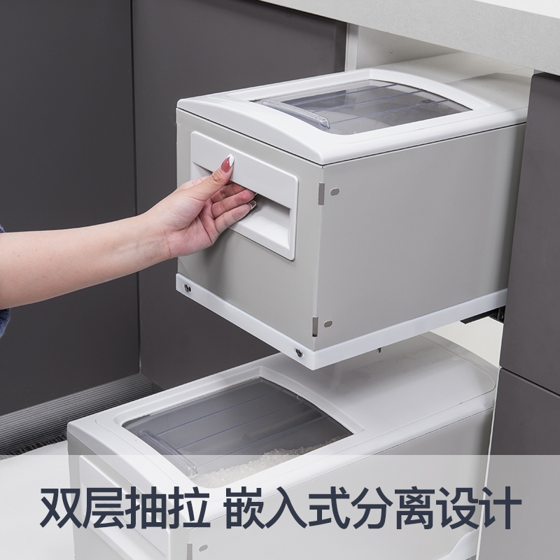 Shunta overall cabinet embedded rice box 304 stainless steel kitchen household drawer rice noodle box rice barrel rice cabinet pull basket