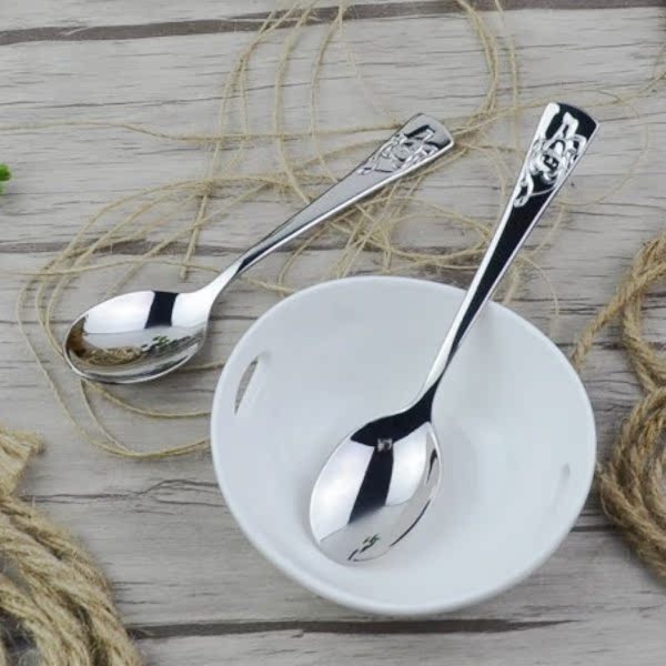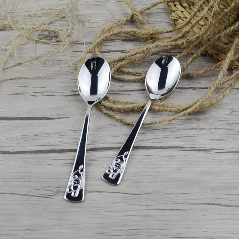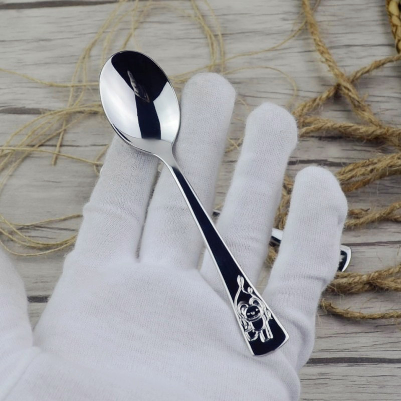 Export German teddy bear 304 stainless steel children's soup spoon student spoon kindergarten baby non-staple food feeding spoon