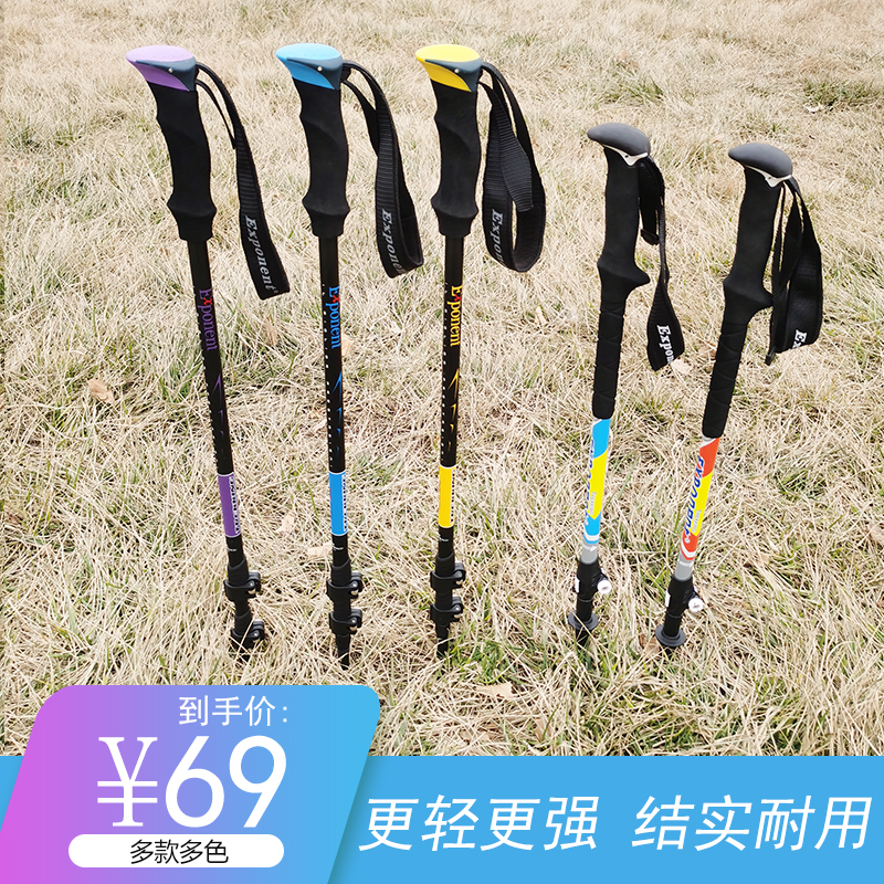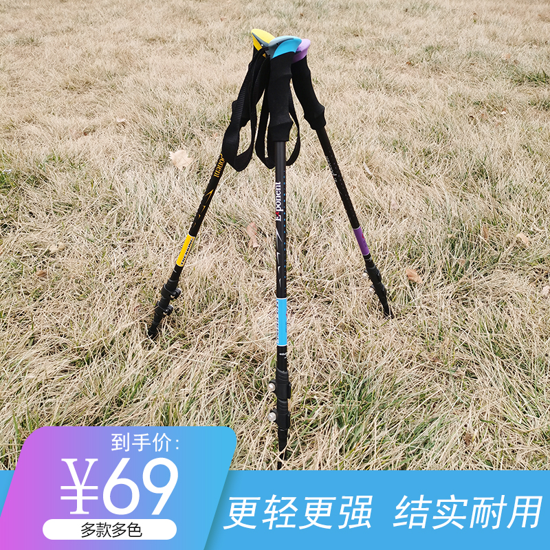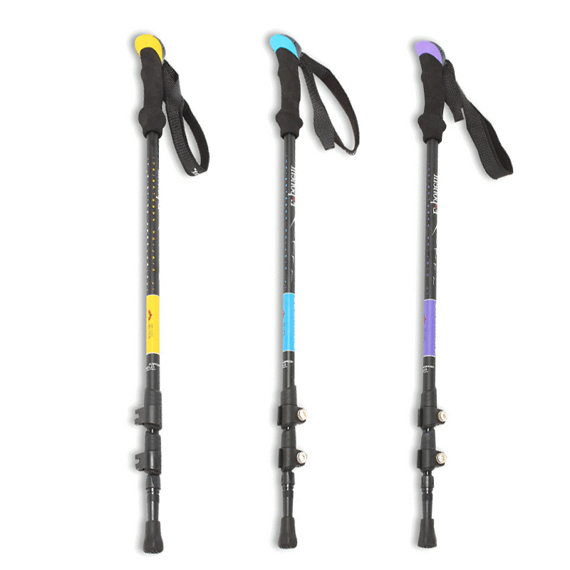 Outdoor trekking stick outer lock ultra-light telescopic carbon material aluminum alloy folding outdoor trekking crutches climbing three sections