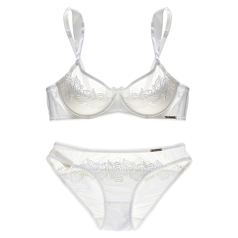 New products Female Sensation Lace Embroidery Underwear Bra Thin mold Cup pure cotton material Europe and America large size bra white