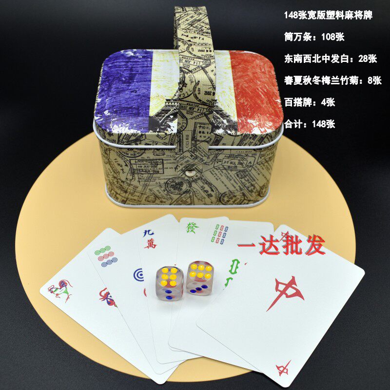 108 long strips with 10,000 mahjong cards 1 pair of long strips 144 pieces of paper mahjong 1 pair of 144 wide edition paper mahjong cards 144 narrow version plastic frosted plastic mahjong cards 148 wide version plastic frosted mahjong cards joke about 150 plastic mahjong cards in iron boxes