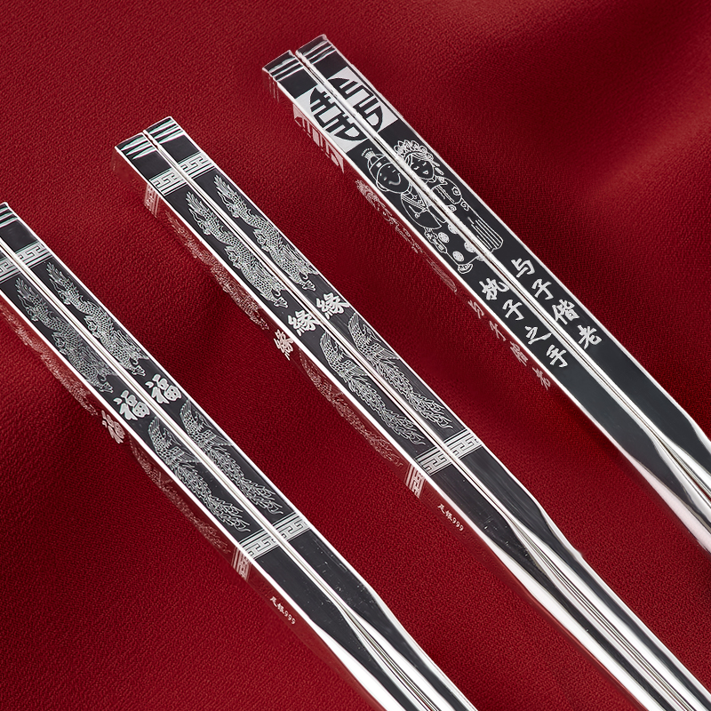Shun qin silver floor S999 thick silver hollow pure silver chopsticks dinner chopsticks silver tableware practical household wedding gift