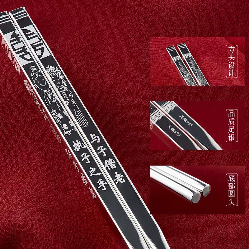 C4301 silver chopsticks 51 grams of Fu + certificate C4302 silver chopsticks 51 grams of Xi + certificate C4303 silver chopsticks 51 grams of edge + certificate