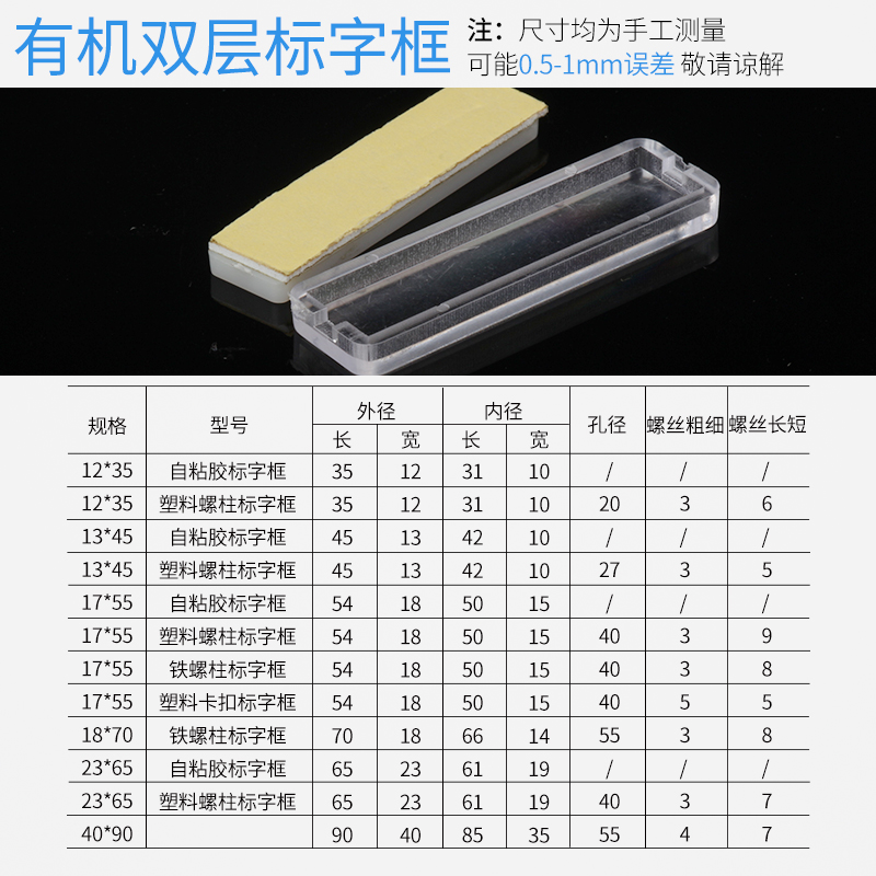 12 * 35 Double-layer label word frame hole distance 20 label frame transparent indicator signs 100 bags of label word frame self-adhesive