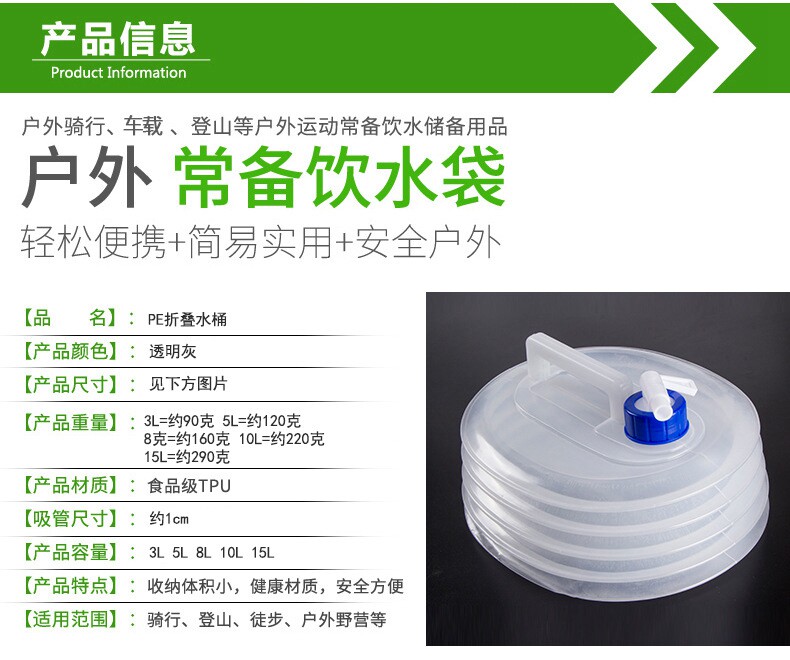 Folding water storage bag Outdoor camping water sac Large capacity portable plastic food grade transparent oil Bottled Water Container