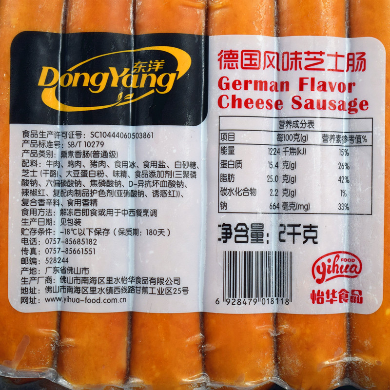 East Ocean Cheese Sausage 2kg Pack of about 20 German sausage series sausage 5-star hotel Ingredients Province