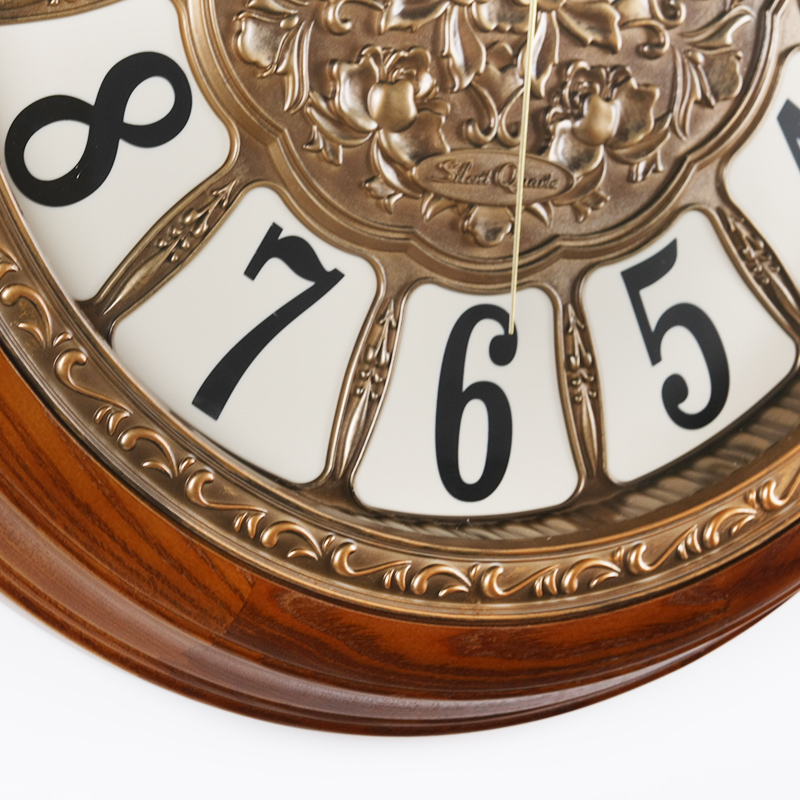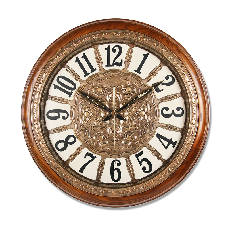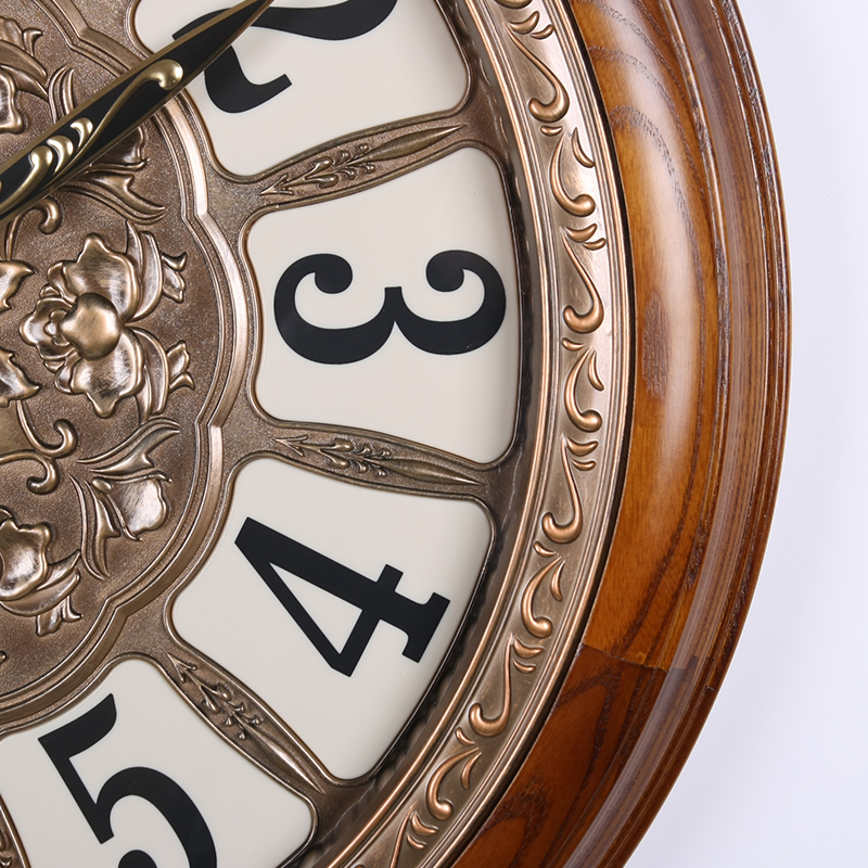 TQJ large solid wood living room wall-mounted bell Eurostyle round hanging table decoration quartz clock table mute bedroom clock
