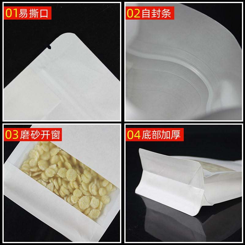 Frosted white kraft paper open window octagonal self-sealing self-supporting bag food packaging bag food sealing bag spot wholesale