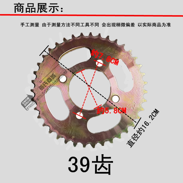 Locomotive straddle ride 125150 size large fluted disc chain thickened wheel 39 teeth 15 teeth set with three accessories