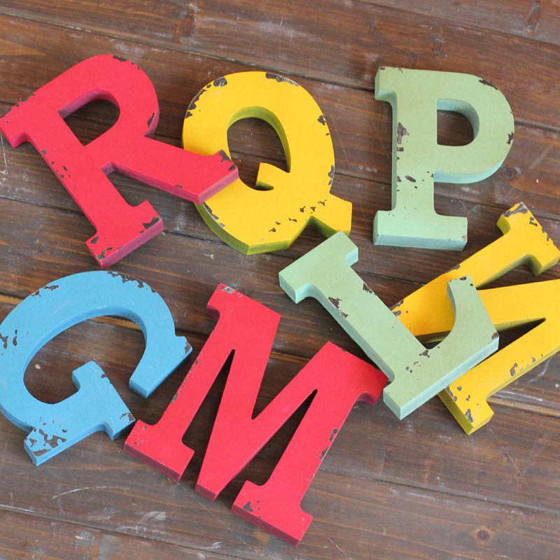 Retro made of old wooden letters Decorative Pendulum with antique English 26 Letters Photographic Props Bar Cafe Wall Accessories