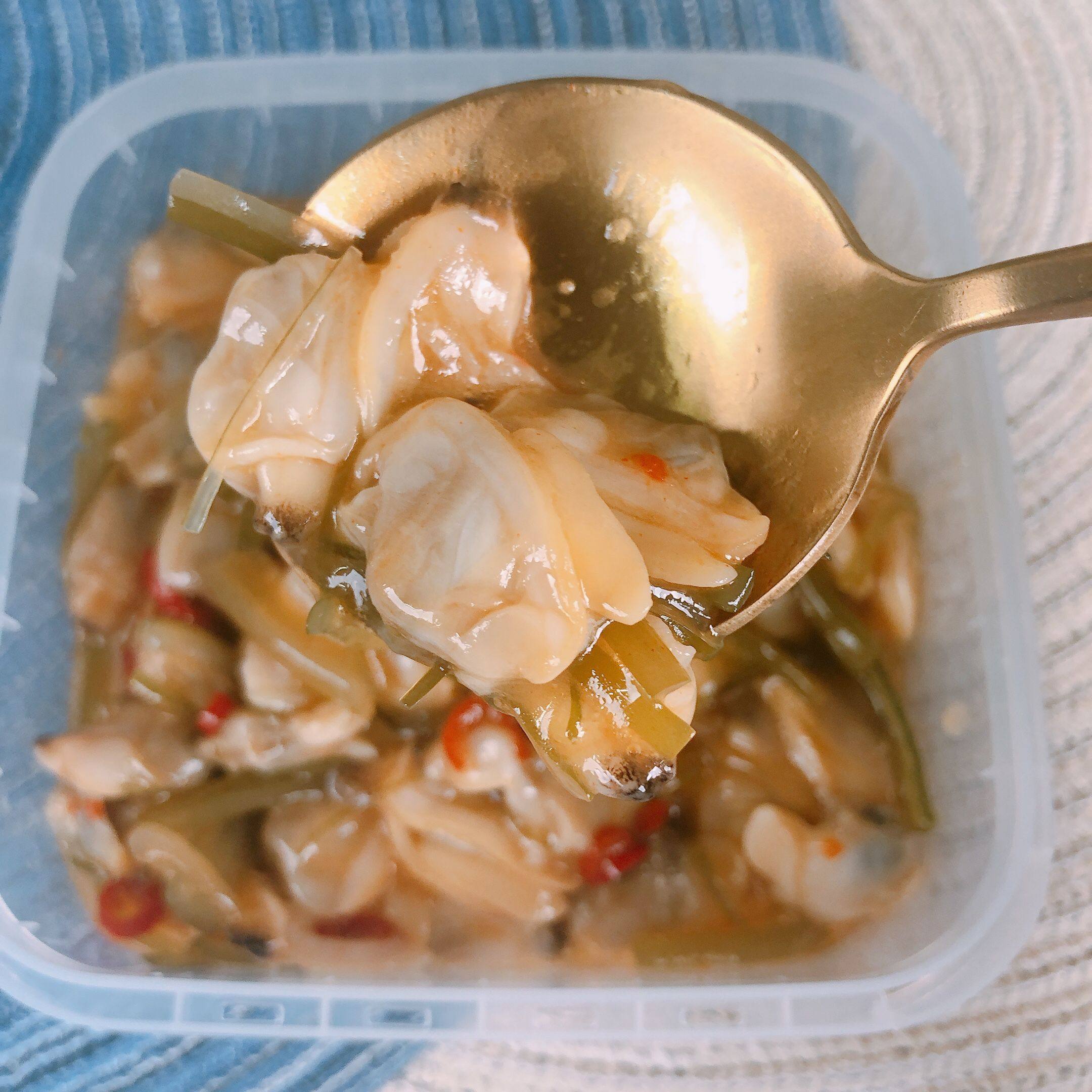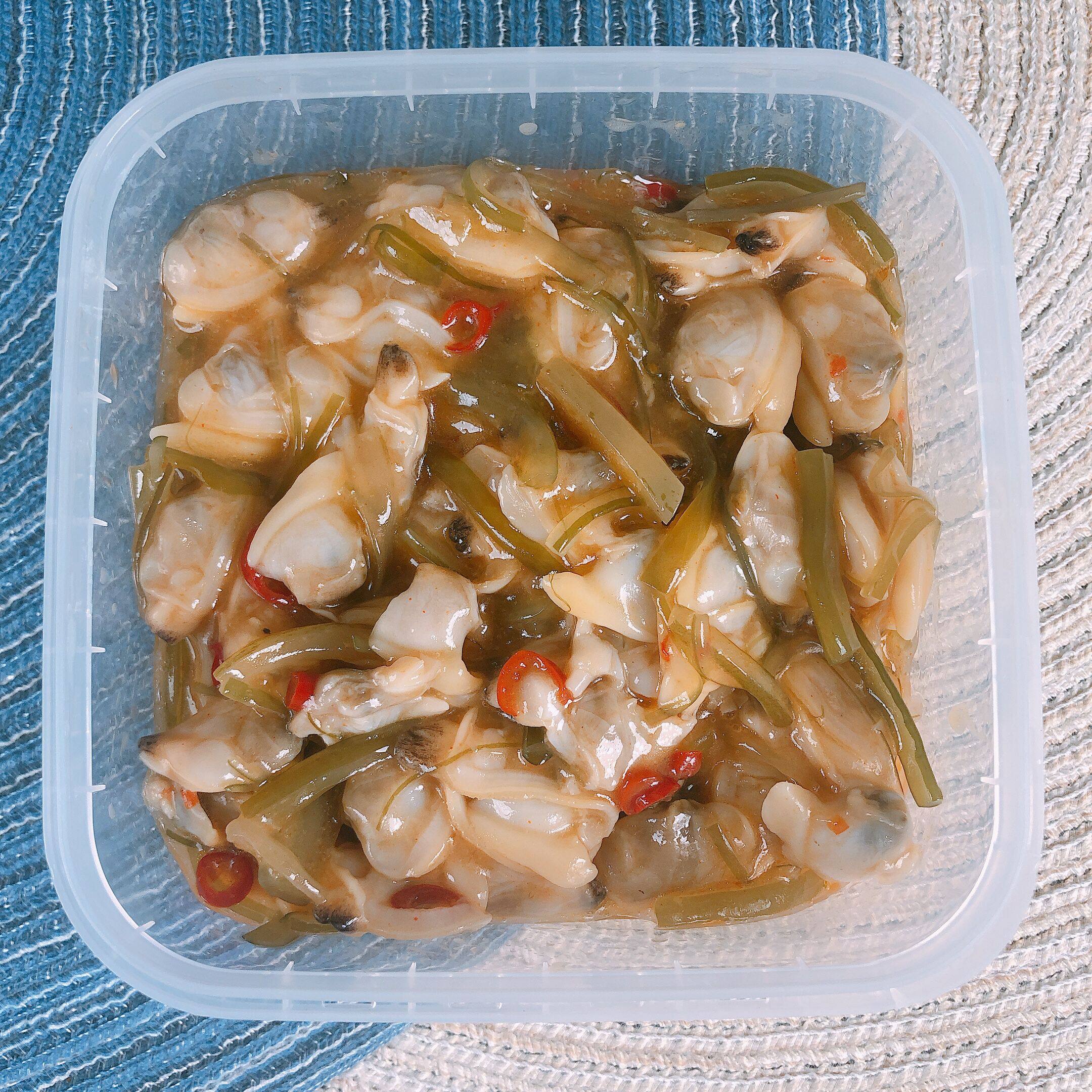 Clam meat (more than 85%), white sugar, sorbitol powder, salt, rice vinegar, pepper, monosodium glutamate, peppercorn oil, xanthan gum
