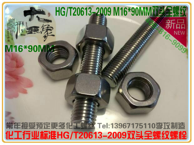 M16 * 90mm 316L stainless steel full thread double head screw chemical industry standard HG T20613-2009