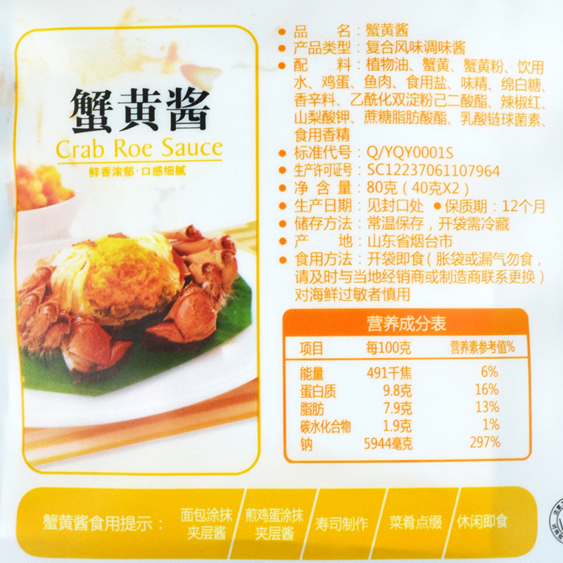 Crab yellow sauce Shandong Tobacco Crab Yellow Crab Yellow Oil Green Ocean Crab Yellow Sauce Sushi Mixed Meals Ready-to-eat 80g