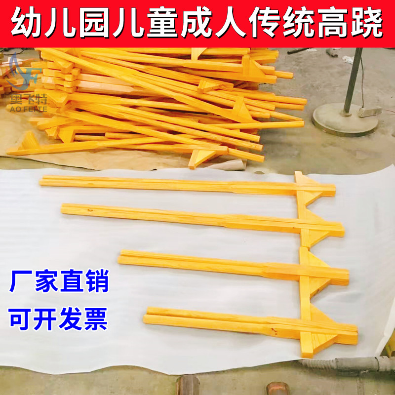 Fitness wooded adult children tied leg high stilts to tie rope folk traditional school acrobatic national training
