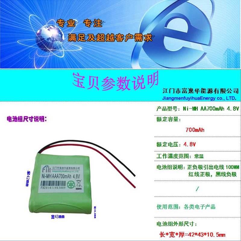 Ni-MH rechargeable battery pack(No 7)Ni-MH AAA700mAh 4 8V Suitable for all kinds of electronic products