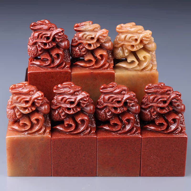 Shoushan stone dragon play bead seal engraving seal stone name collection calligraphy and painting seal practice seal stone seal material stone 3x3x6