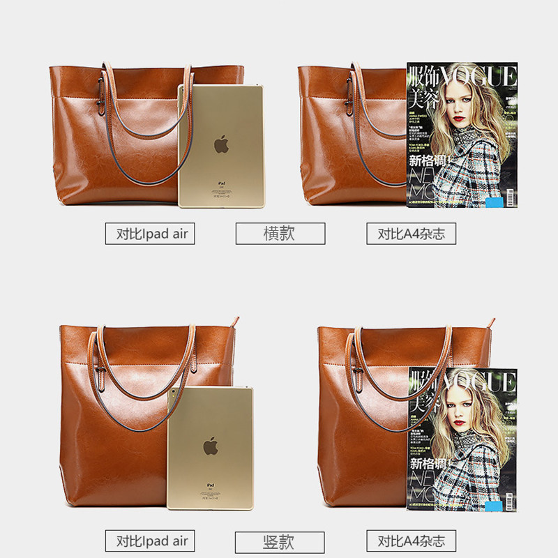 Single shoulder bag bag leather leather is a fancy European and American fashion large capacity cow skin soft skin lady Tot pack