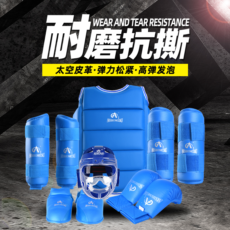Karate protective gear Full set of hand protectors, arm protectors, leg protectors, fighting leg protectors, Kyokushin boxing gloves, one-piece protective gear gloves