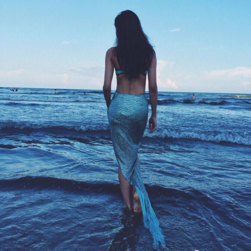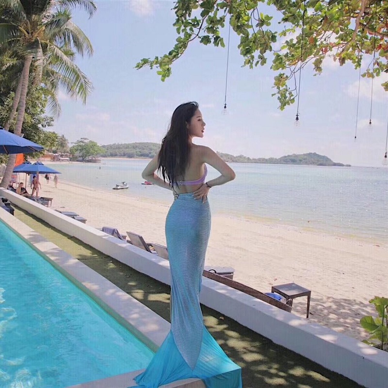 Net Red Maldives Bali Long Skirt Blue Mermaid Tail Split Skirt Beach Seaside Vacation