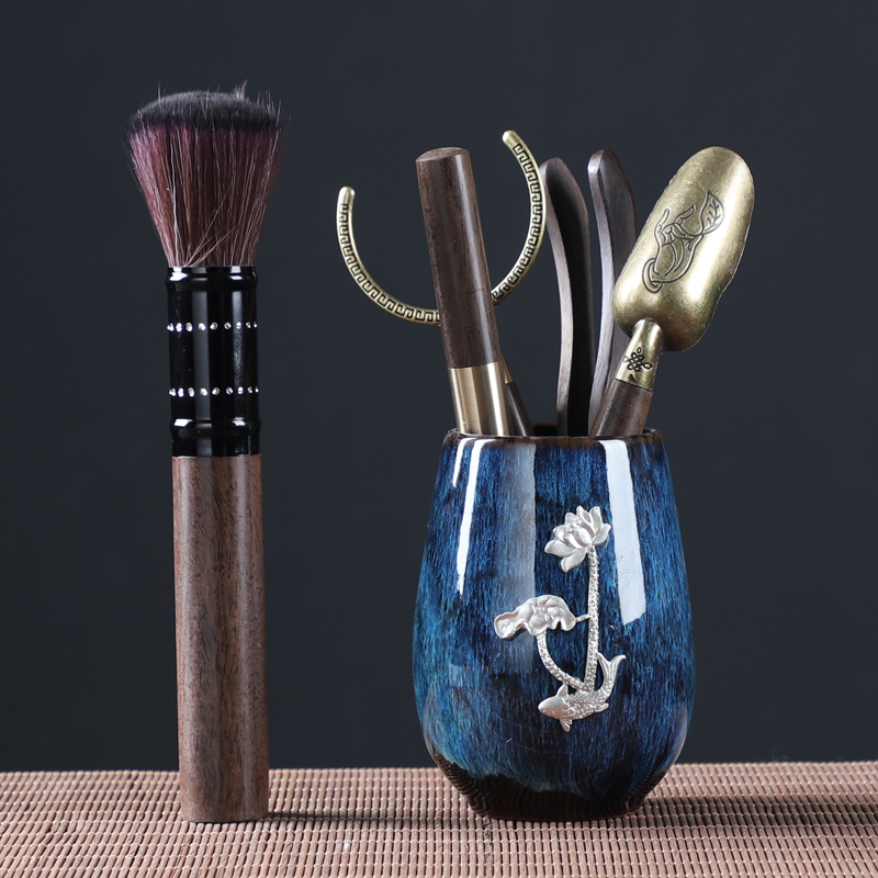 Sand Gold Glazed Tea Ceremony Bucket (Fish Fun) Black Sandalwood Pen Tea Ceremony