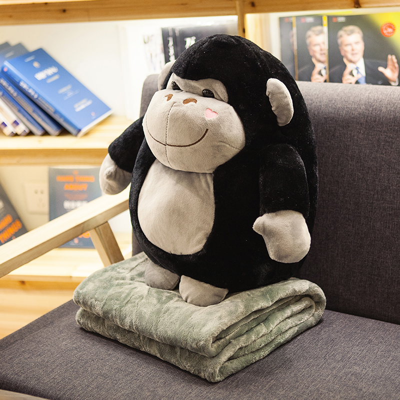 Cartoon Gorilla Cuddle With Pillow Quilt Two-in-one Coral Suede Air Conditioning Quilted By Blanket Leaning Back Cushion Afternoon Nap Pillow