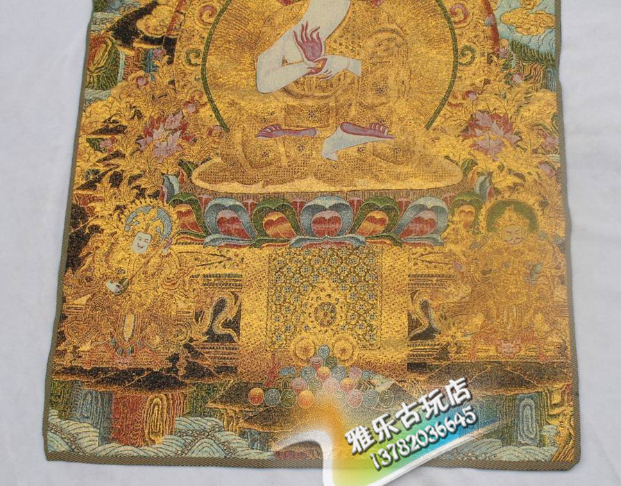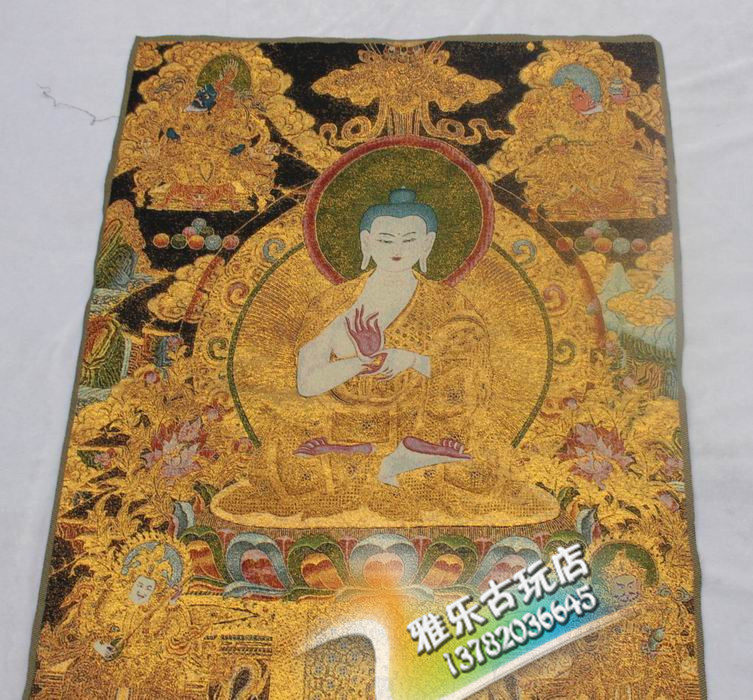 Antique collection Religious Buddha Silk embroidery Golden silk Thangka portrait Brocade painting Shakyamuni machine embroidery cloth painting