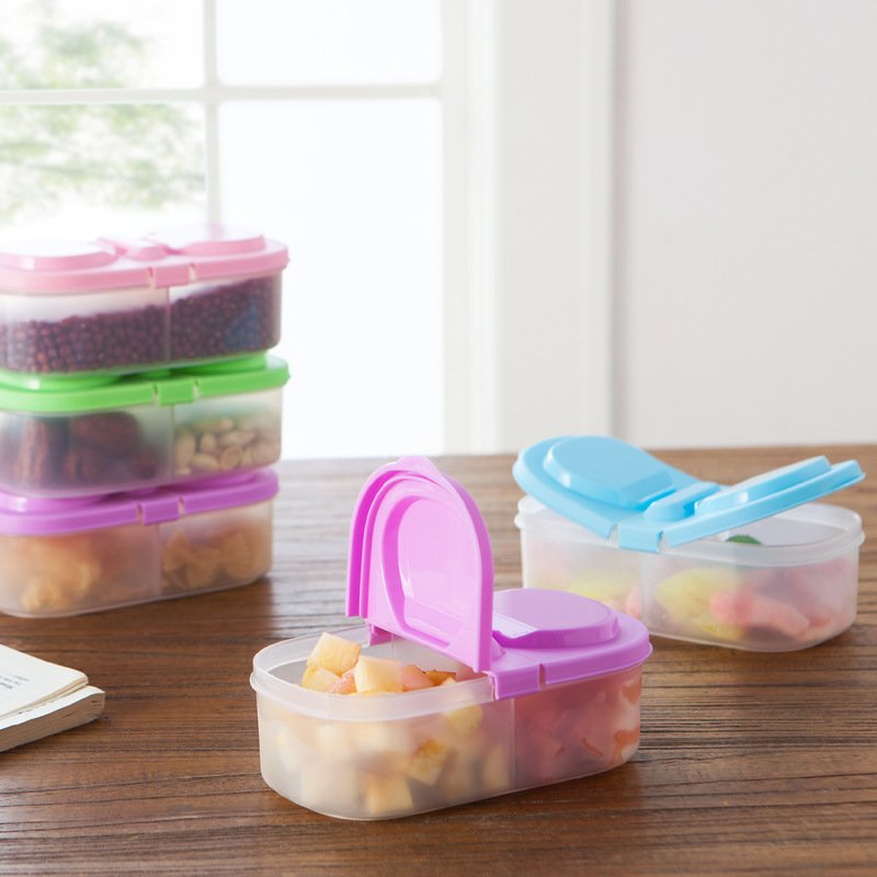 Double-cell flip-top fresh-keeping box fruit snack refrigerator fresh-keeping storage box large-capacity food storage miscellaneous grain box
