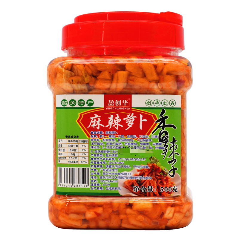 Shao Guante production Ying Chong Hua Spicy Radish 500g * 4 bottles of lower rice dish Spicy Radish Dry Spicy Roperin