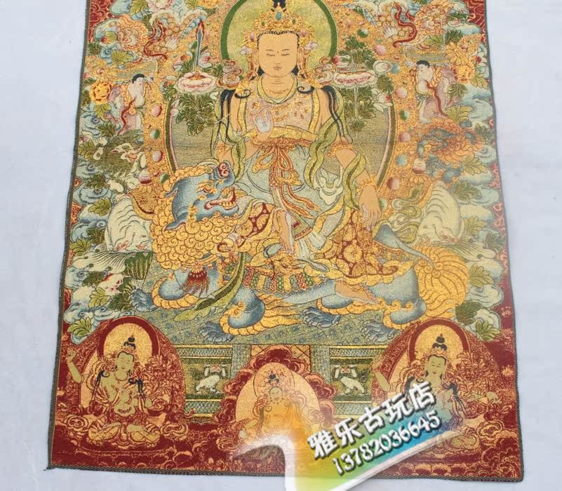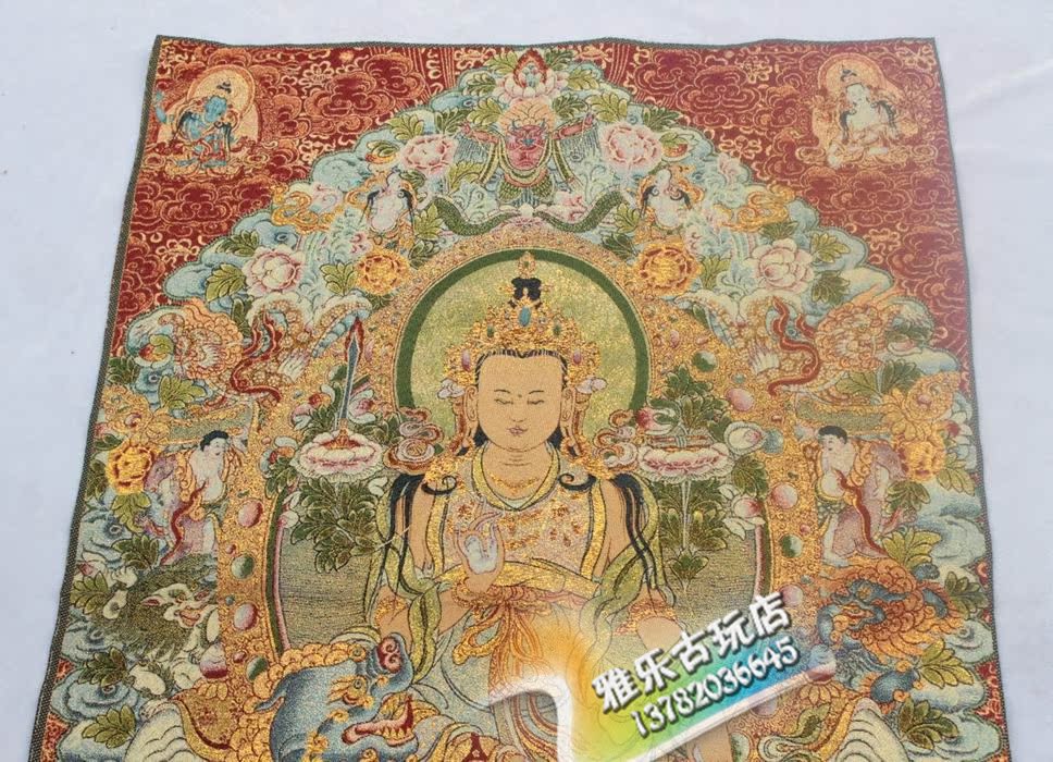 Tibetan Buddha statue Nepal golden silk thangka cloth brocade machine embroidery painting silk embroidery large Guanyin thangka embroidery