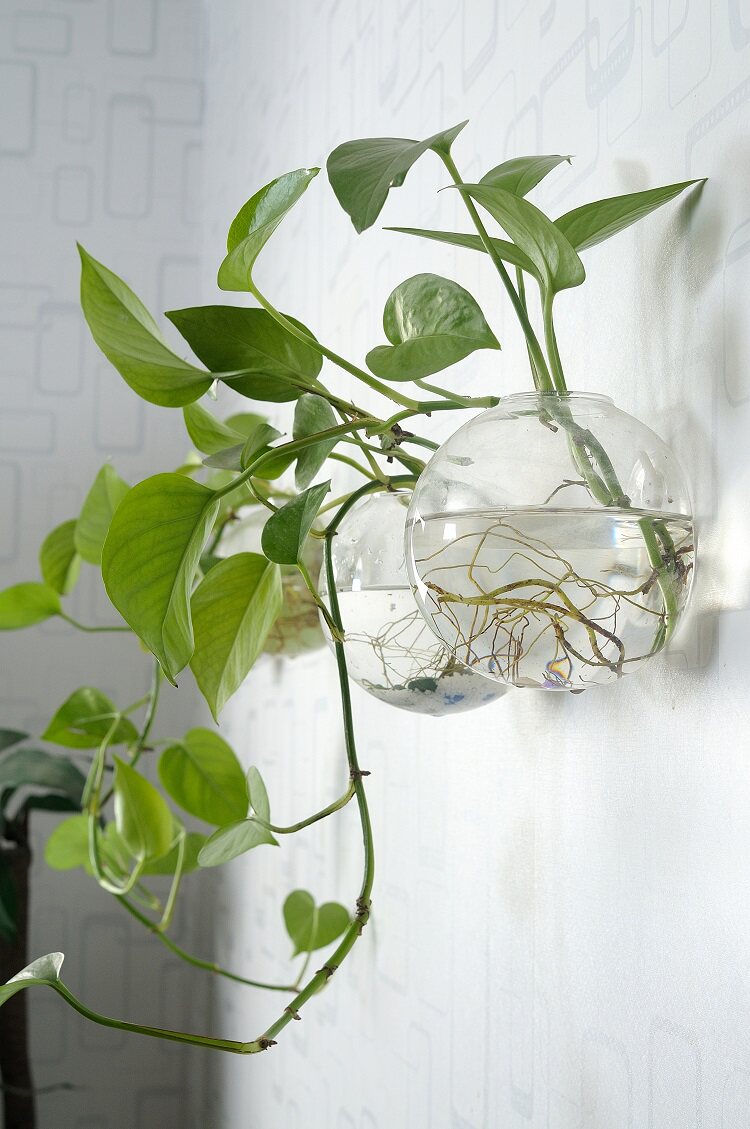 Creative glass vase transparent living room simple modern wall hanging rich bamboo Hyacinth green dill hydroponic vase decoration