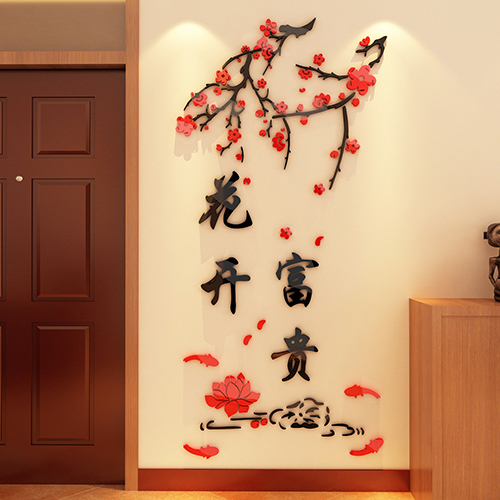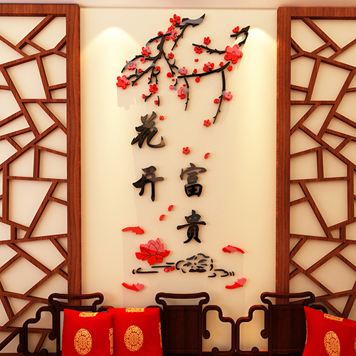 New Chinese TV Wall Decoration Flowers Open Rich 3d Solid Xuanguan Background Dining Hall Wall wall Painted New Year Acrylic