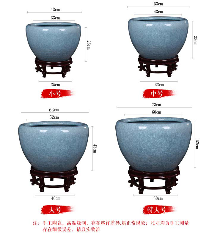 Jingdezhen ceramic crack glaze fish tank open piece goldfish tank turtle tank water lily pot lotus tank bowl lotus tank large
