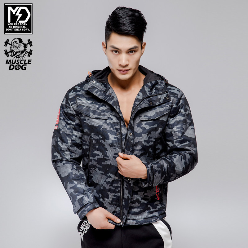 MuscleDog MuscleDog Handling Bomber Camouflage Grid Red Cotton Cotton Coat New