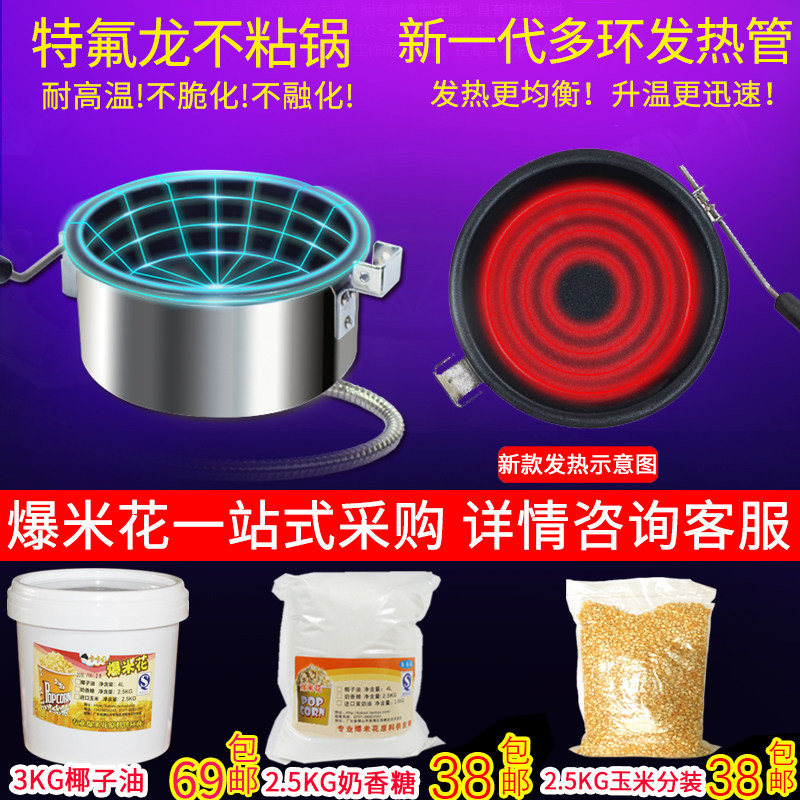 Popcorn maker + spherical corn + milk gum + coconut oil