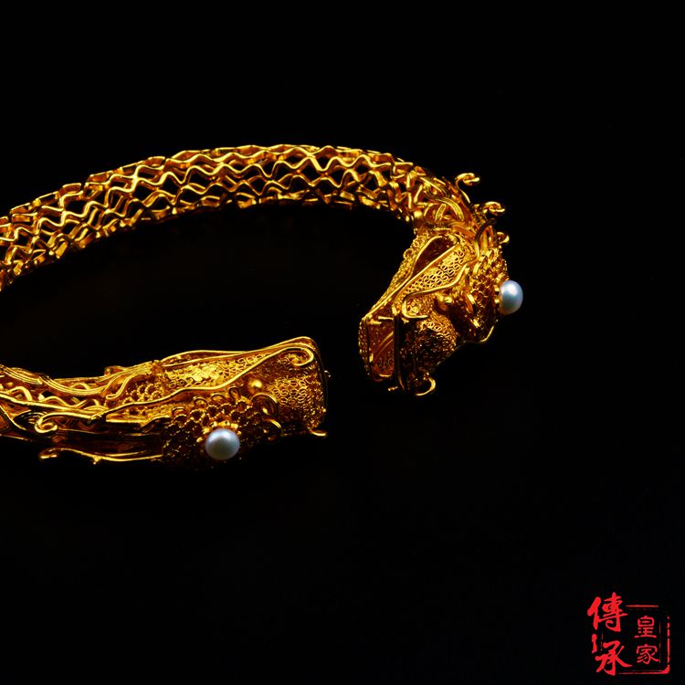 Imitation of the Ming Dynasty, tired silk double dragon head dragon bracelet filigree inlaid ancient Han clothing accessories silver gold plated silver bracelet Forbidden City