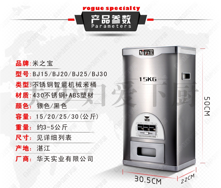 Stainless steel rice bucket household smart rice box automatic rice storage device 10 20 30 kg moisture-proof and insect-proof sealed rice tank