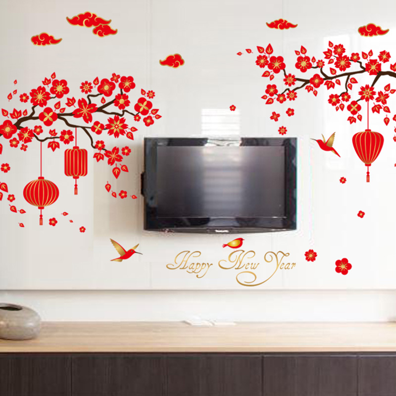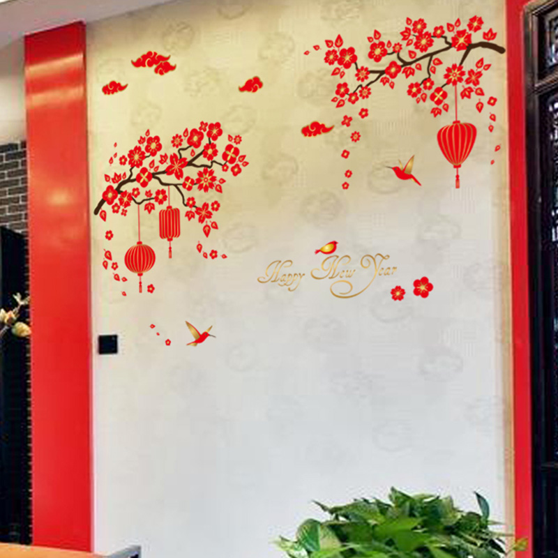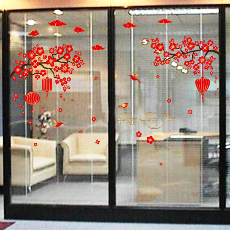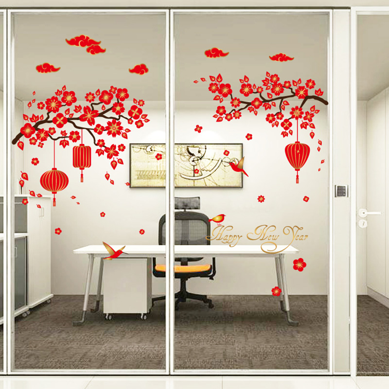 New Year's Eve Spring Festival Festive Wall Sticker Painting Window Glass Stickers to arrange New Year decorations Plum lantern stickers