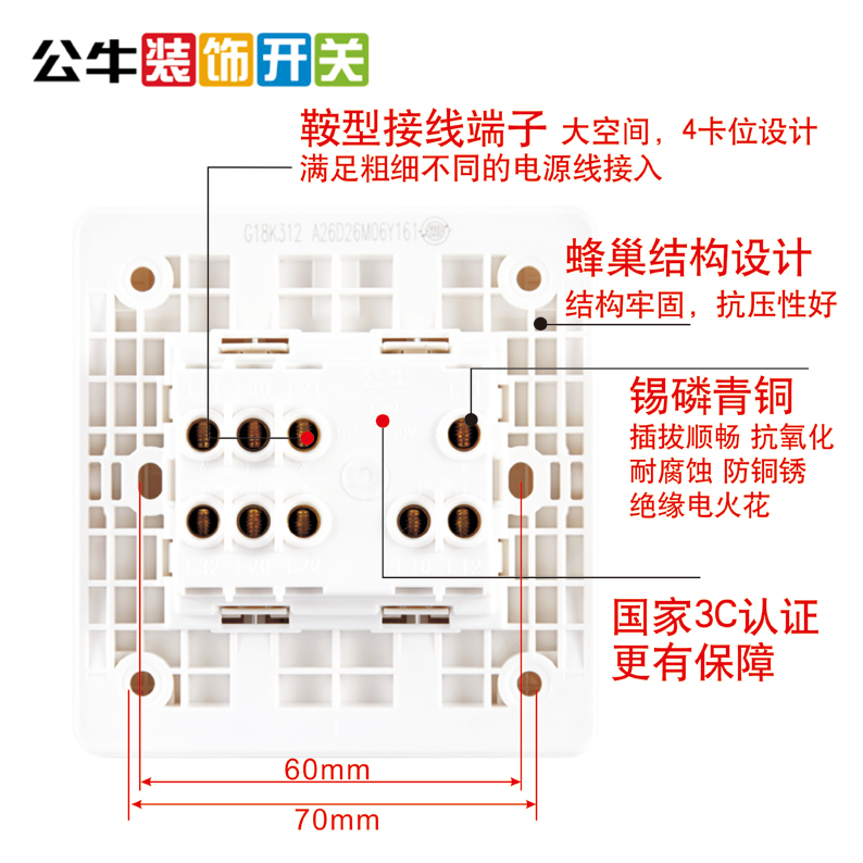 Bull switch socket power supply 86 type wall wall decoration household 3 open double triple open double cut switch panel
