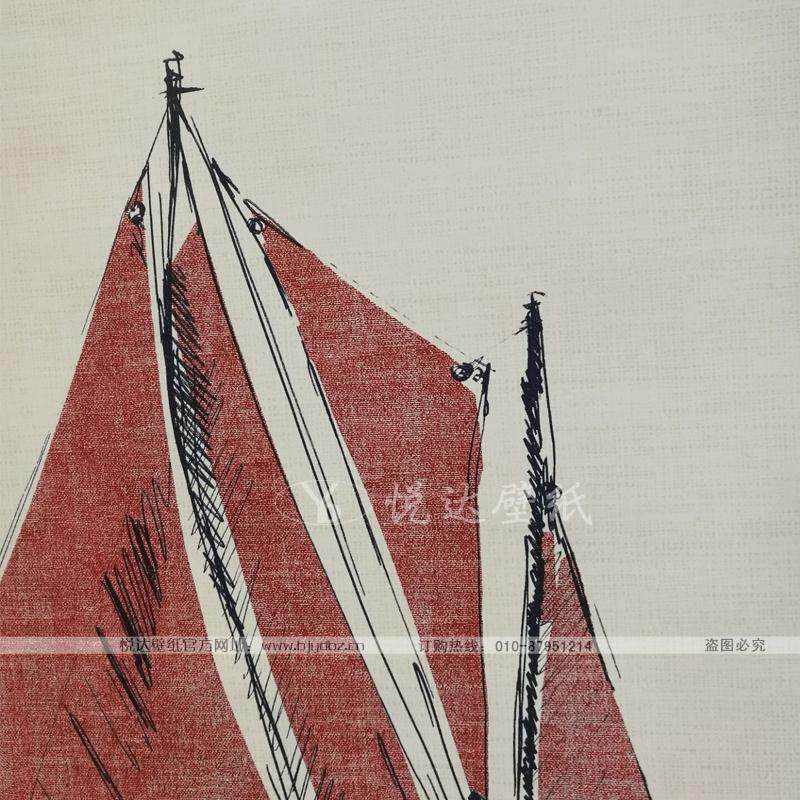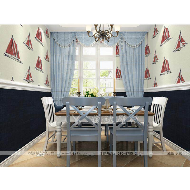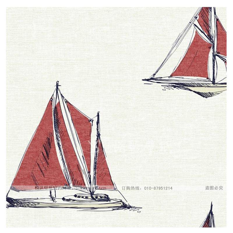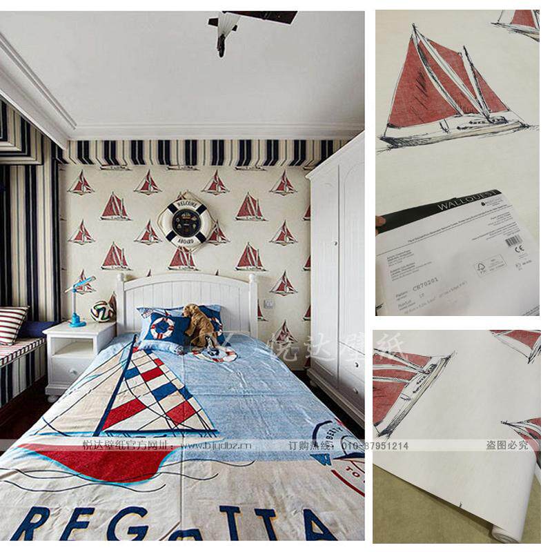 American Yulichi imported pure paper wallpaper modern simple red sailing boat wallpaper Mediterranean children's room wallpaper