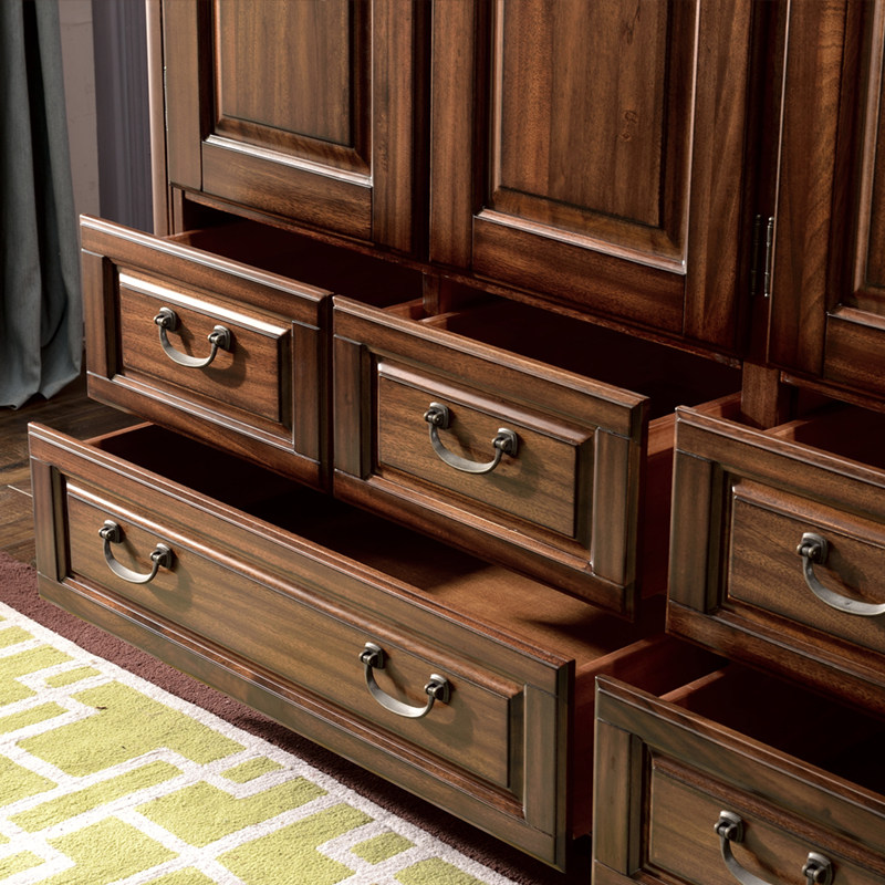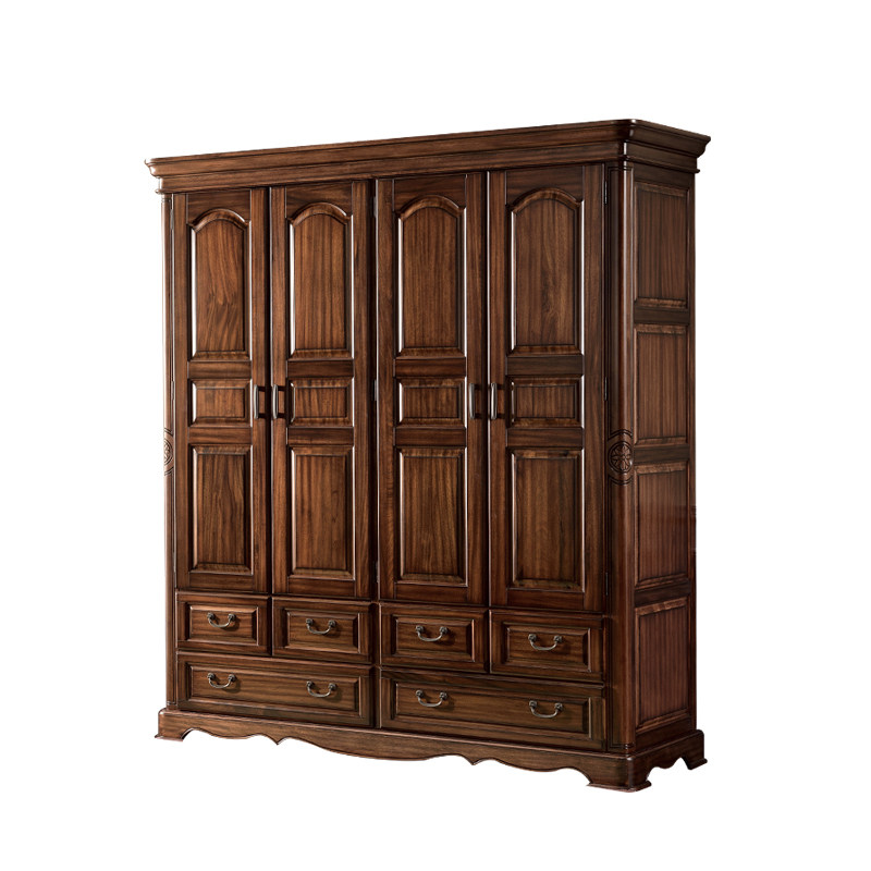 Valmer All - solid wood black walnut four - door cotton cabinet assembled American country bedroom furniture