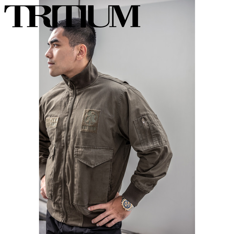 Jacky Liang Pin Tritium men's spring and autumn frock coat double cotton lapel vintage bomber jacket 01717