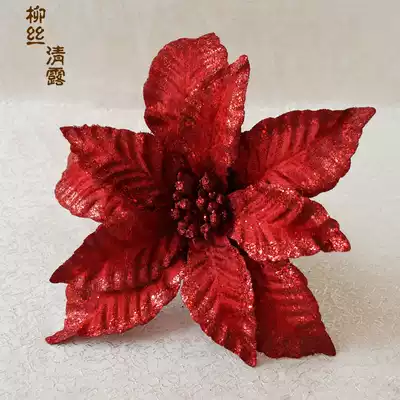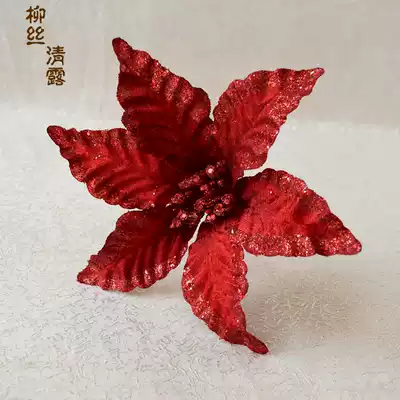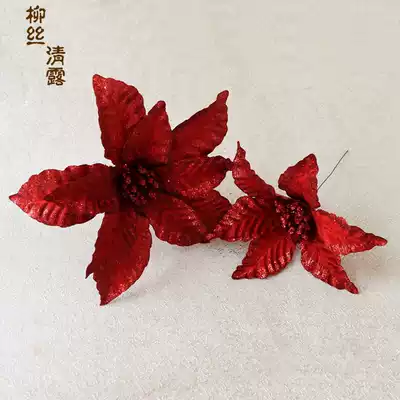 Red Christmas flower glitter cloth rattan decorative flower handmade plastic flower double fake flower creative diy material