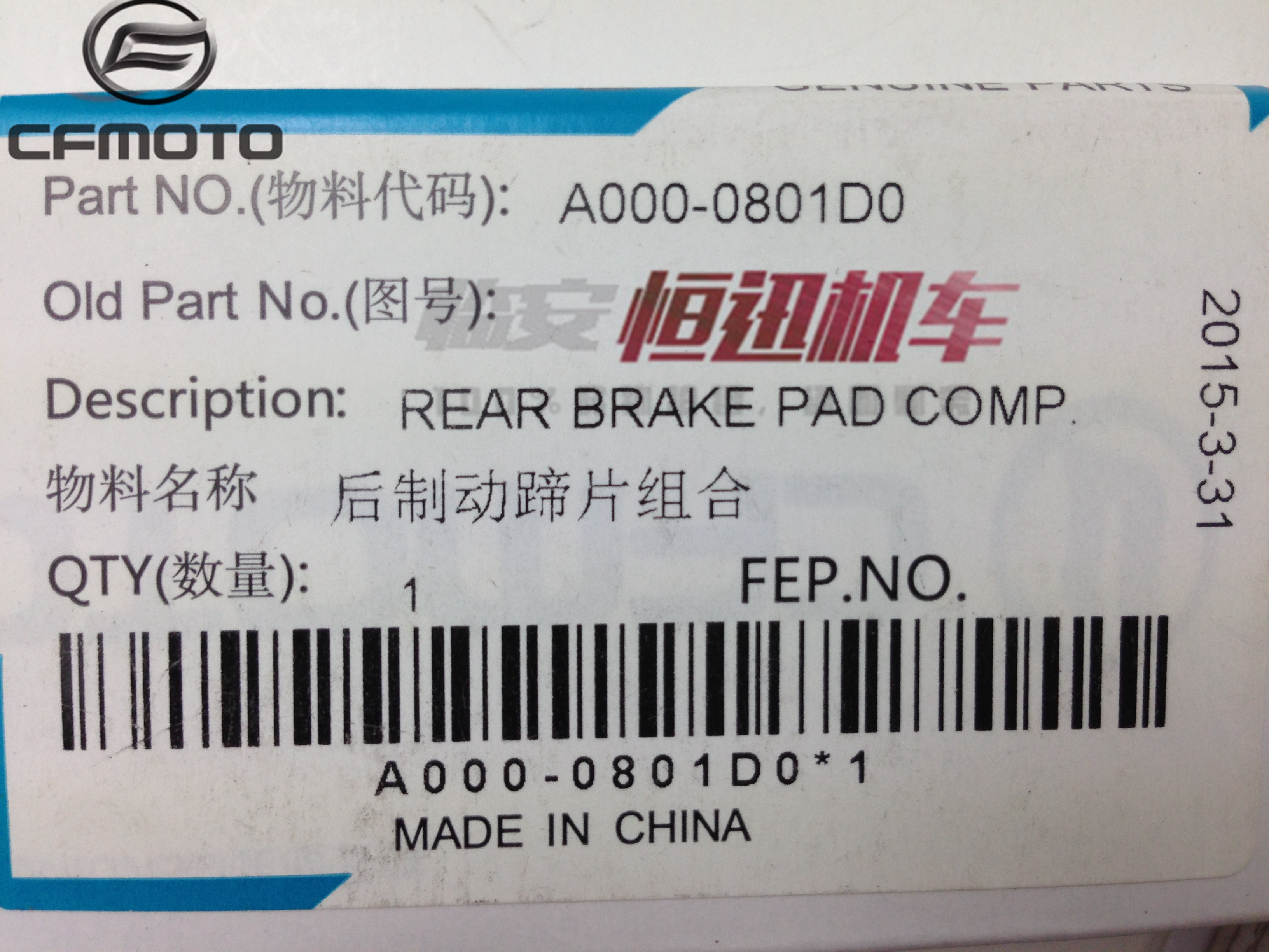 The original spring breeze 650NK TR GT MT Guobin 400NK rear brake pad CF650-7 after brake pad West interaction