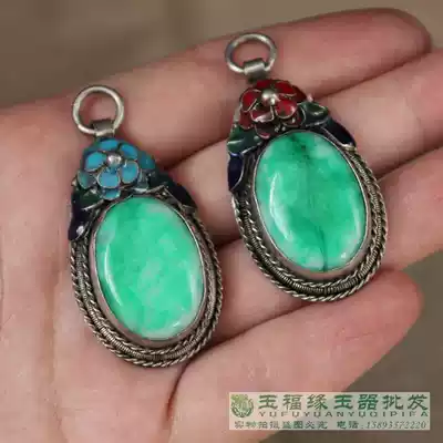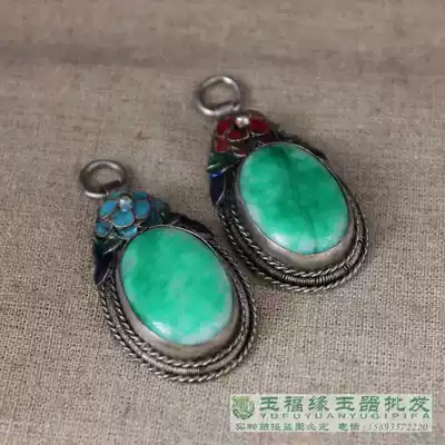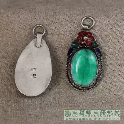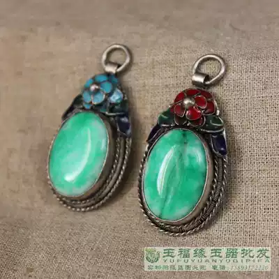 Antique miscellaneous pendant collection Antique old silver inlaid enamel foot silver Cloisonne emerald pendant