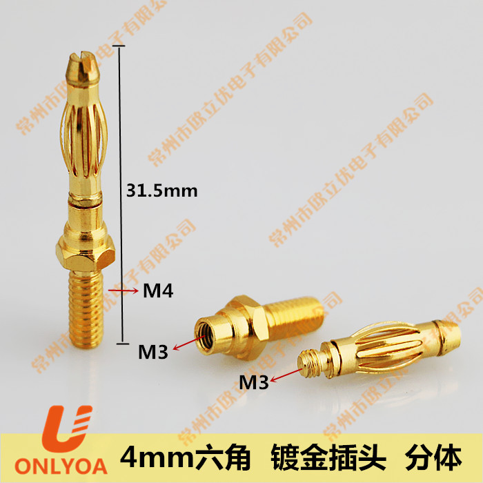 Ouliyou 4mm banana plug Copper gold plated with M4 thread hexagonal terminal block plug M3 thread two-piece U608