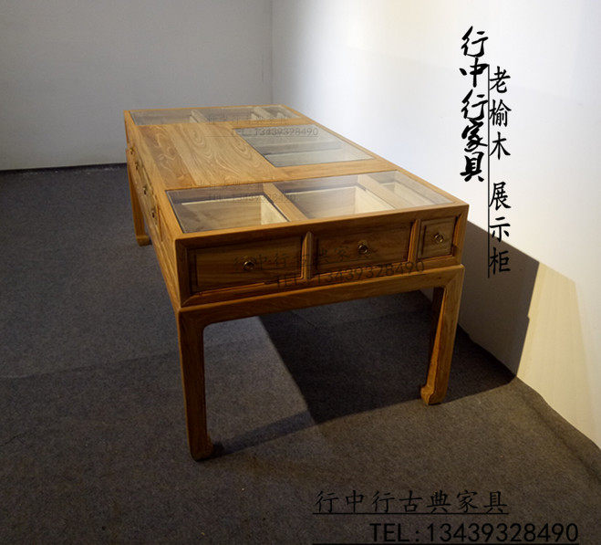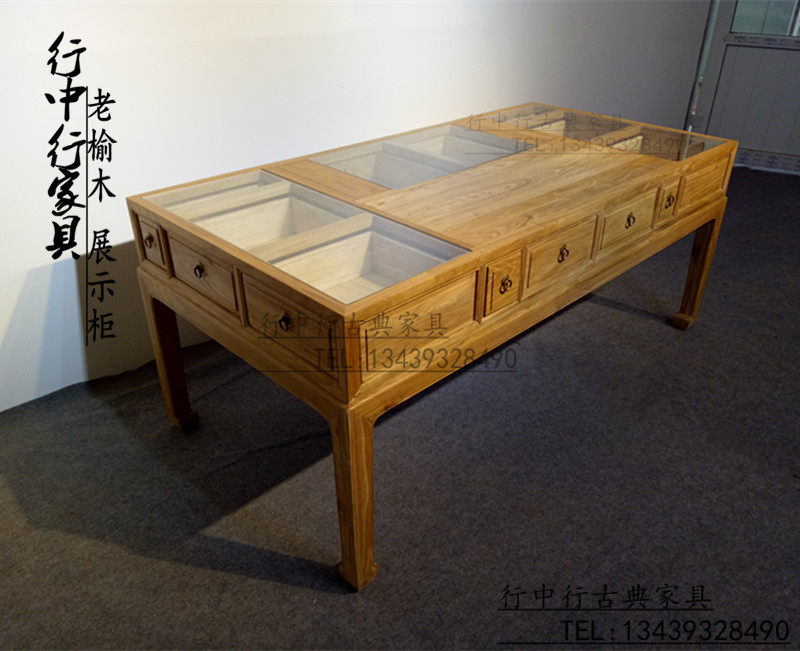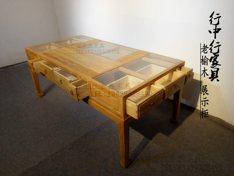 New Chinese style solid wood display counter old elm wood display cabinet jewelry jewelry jade glass island container furniture exhibition table